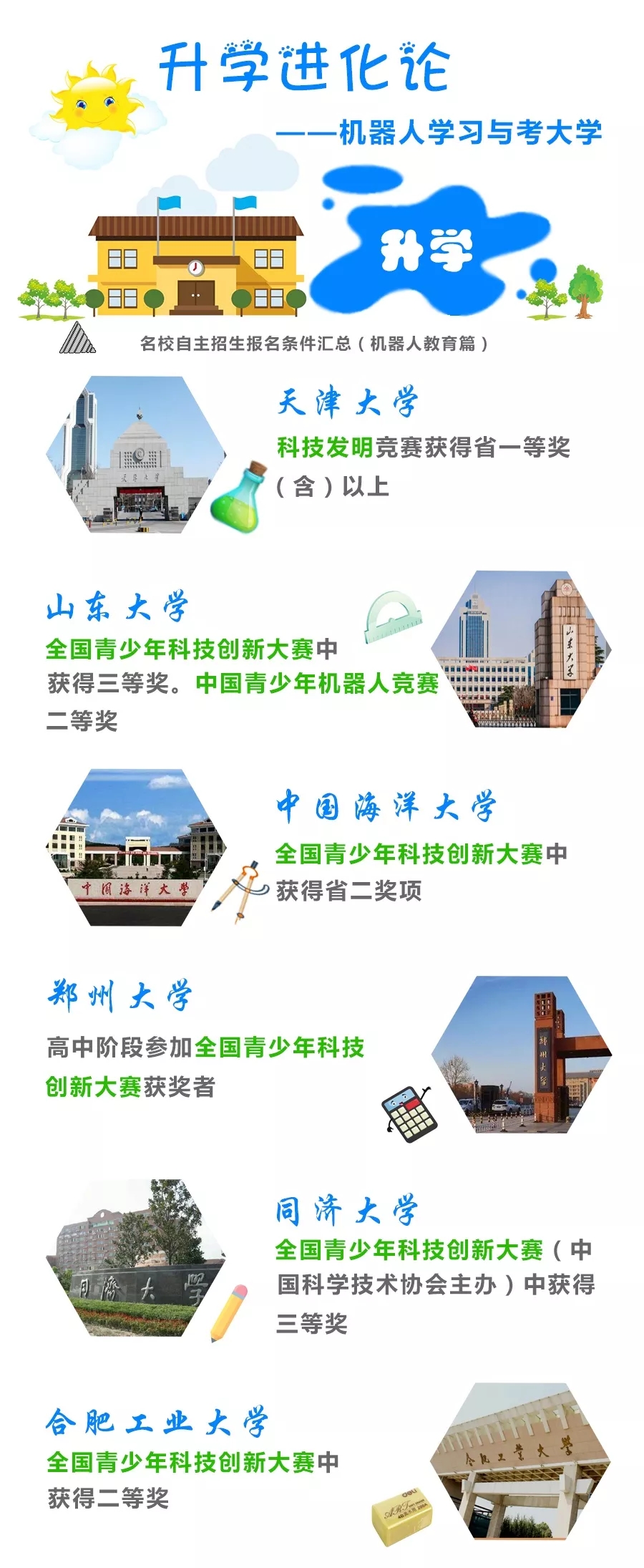 現(xiàn)在,大學(xué)已競相開設(shè)機器人專業(yè),高考政策對機器人人才也開設(shè)了自主招生渠道,未來教育的發(fā)展趨勢也可預(yù)想而知。